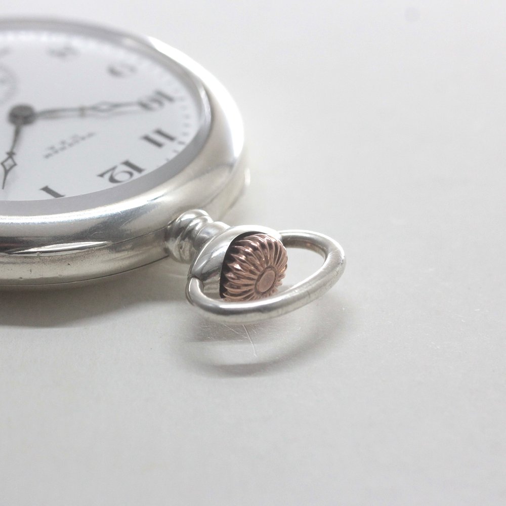おすすめコメント:1919年に製造されたアメリカンウォルサムのリバーサイド。ペットネーム「リバーサイド」は、小説家・川端康成が自分の名前のようだと気に入り、愛用したという逸話があります。外装はシルバー900で、アンティークらしい風合いへと経年変化をお楽しみいただける一本です。