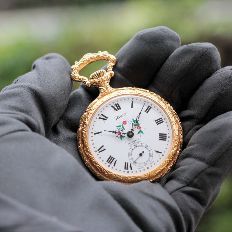 TIMOR/ティモール/オープンフェイス/ラッカー仕上げ/TPFLORALB/ゴールドカラー 懐中時計