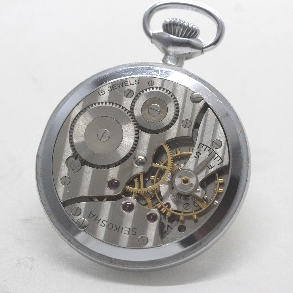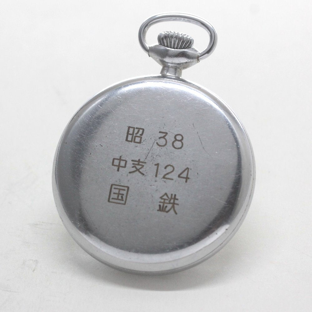 おすすめコメント:すでに絶版の懐中時計で、もう新品では手に入らない、とても希少な時計です。国鉄時代の職員が使用し、正確さが世界トップレベルの日本の鉄道史に欠かせない存在の19セイコー。15石で秒針止め機能がついているので、ハイスペックな時計です。状態のいい19SEIKOは年々手に入りにくくなってきており、オーバーホールも完了している、まだまだ使える時計です。 裏蓋には「昭 38 中支124 国鉄」のモデルとなります。