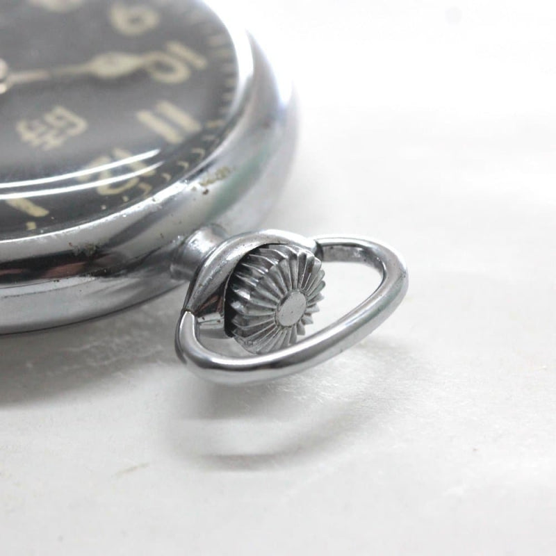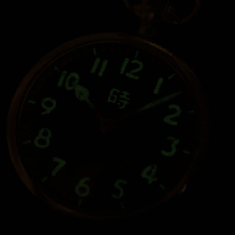 おすすめコメント:発売されず、戦時中零戦のコックピットウォッチとして開発された100式飛行時計。何度チャレンジしても精度が出せなかったため、15石のムーブメントに入れ替えたカスタムモデルです。機械の安定が好評な、安定の15石ムーブメントでありながら、歴史的価値のある飛行時計の文字盤と針を移植。これにより、これからも長く使えるモデルへと生まれ変わりました。裏面はシースルーと趣向性の高い懐中時計です。