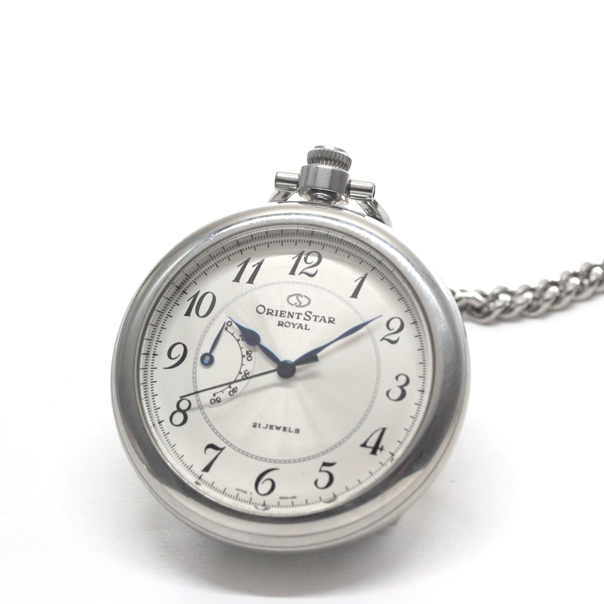 ゼンマイ巻き残量がひと目でわかるパワーリザーブインジケーター 絶版モデルのオリエントスターロイヤル(ORIENT STAR ROYAL)パワーリザーブインジケーター付懐中時計 orientstar-101