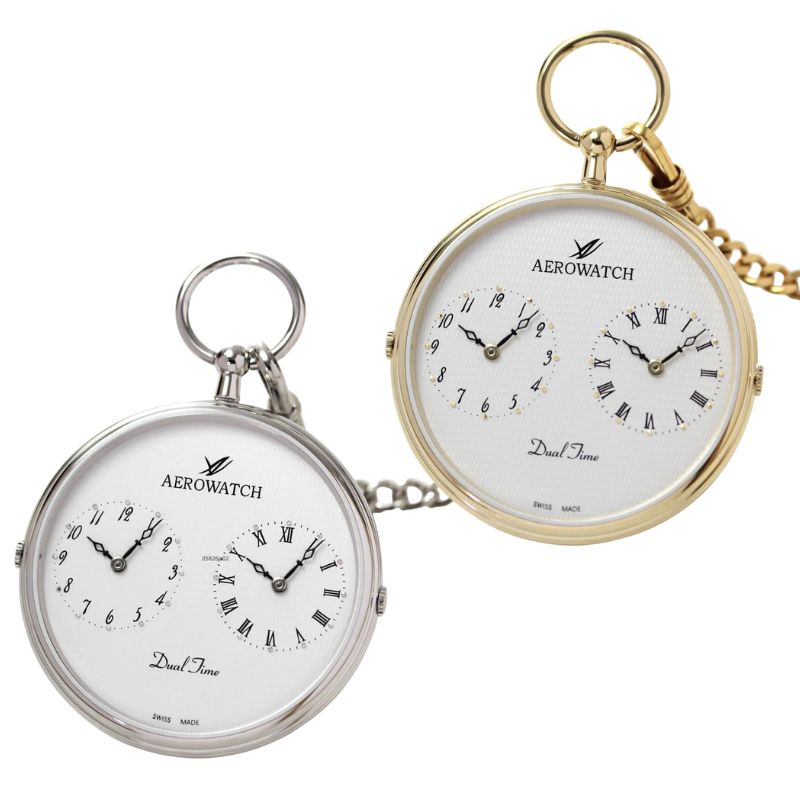 AERO(アエロ) クォーツ式 デュアルタイム 懐中時計 05826PD01・05826JA02/ペア懐中時計
